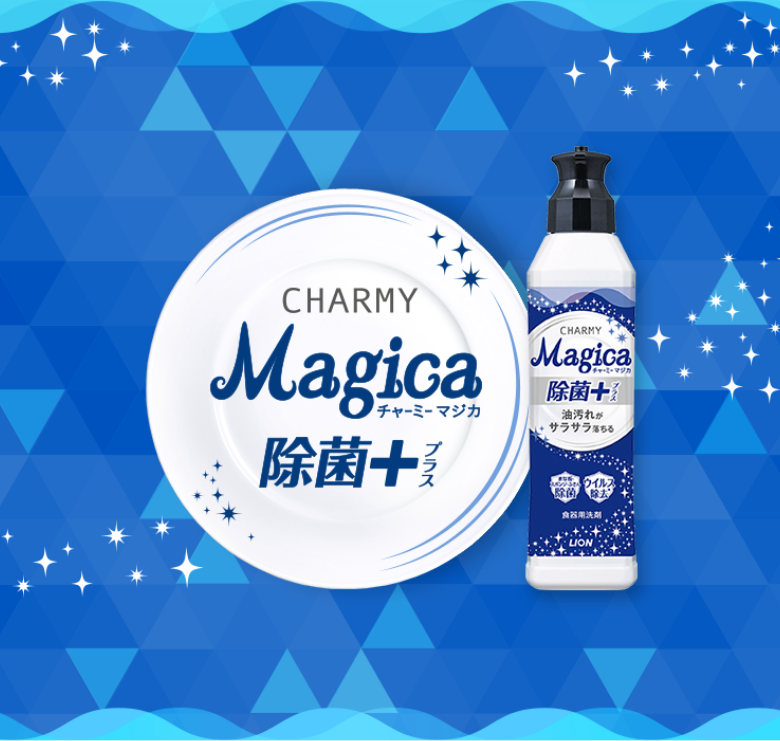 食器用洗剤「Magica(マジカ)」の泡は、ふんわりと軽い泡質になっています。細かく分解した汚れをサラっと浮かせて、手早く流し落とせますので、安心してご使用ください。